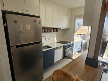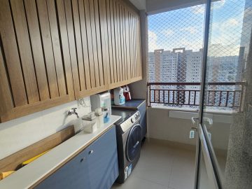 Móveis planejados novos na cozinha, na sala e na lavanderia.