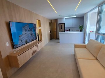 O apartamento conta com 2 dormitórios, sendo 2 suítes elegante e aconchegante, com possibilidade de mais um quarto, além de 2 banheiros modernos e bem equipados.