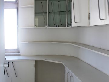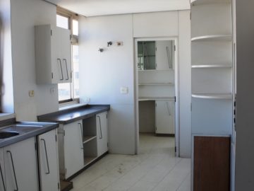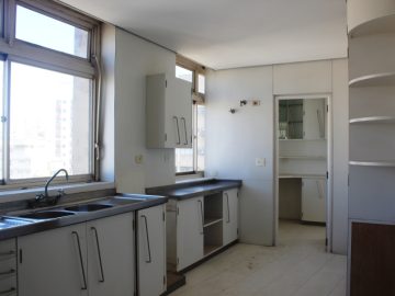 Cozinha ampla com duas pias, armários embutidos e espaço para fogão, 2 geladeiras, micro-ondas, forno elétrico e máquina de lavar-louças; além de ter elevador de comidas/pratos, que conecta com o bar do 19º andar);