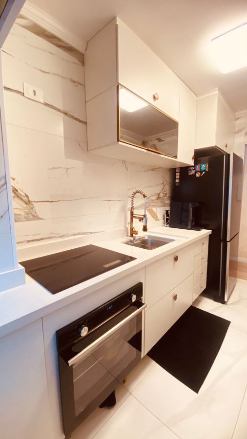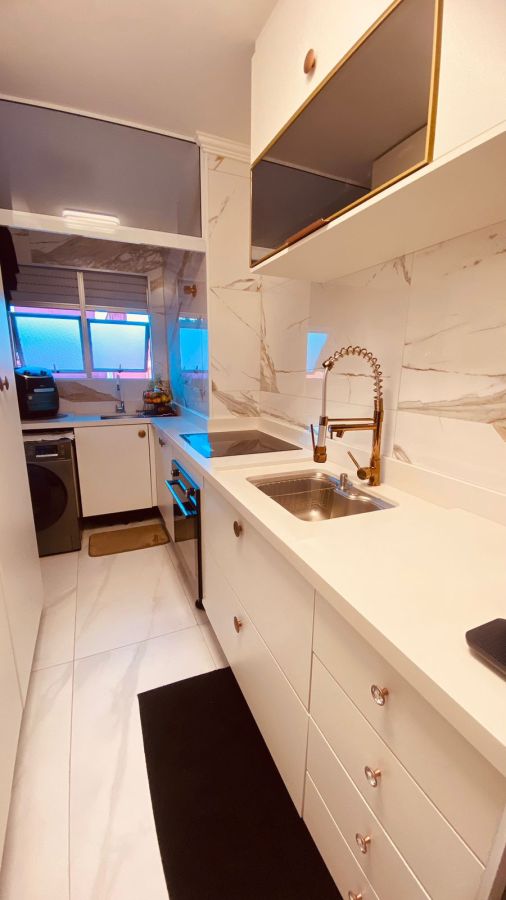 Apartamento todo reformado, com materiais de primeira linha, que oferece um ambiente moderno e confortável.