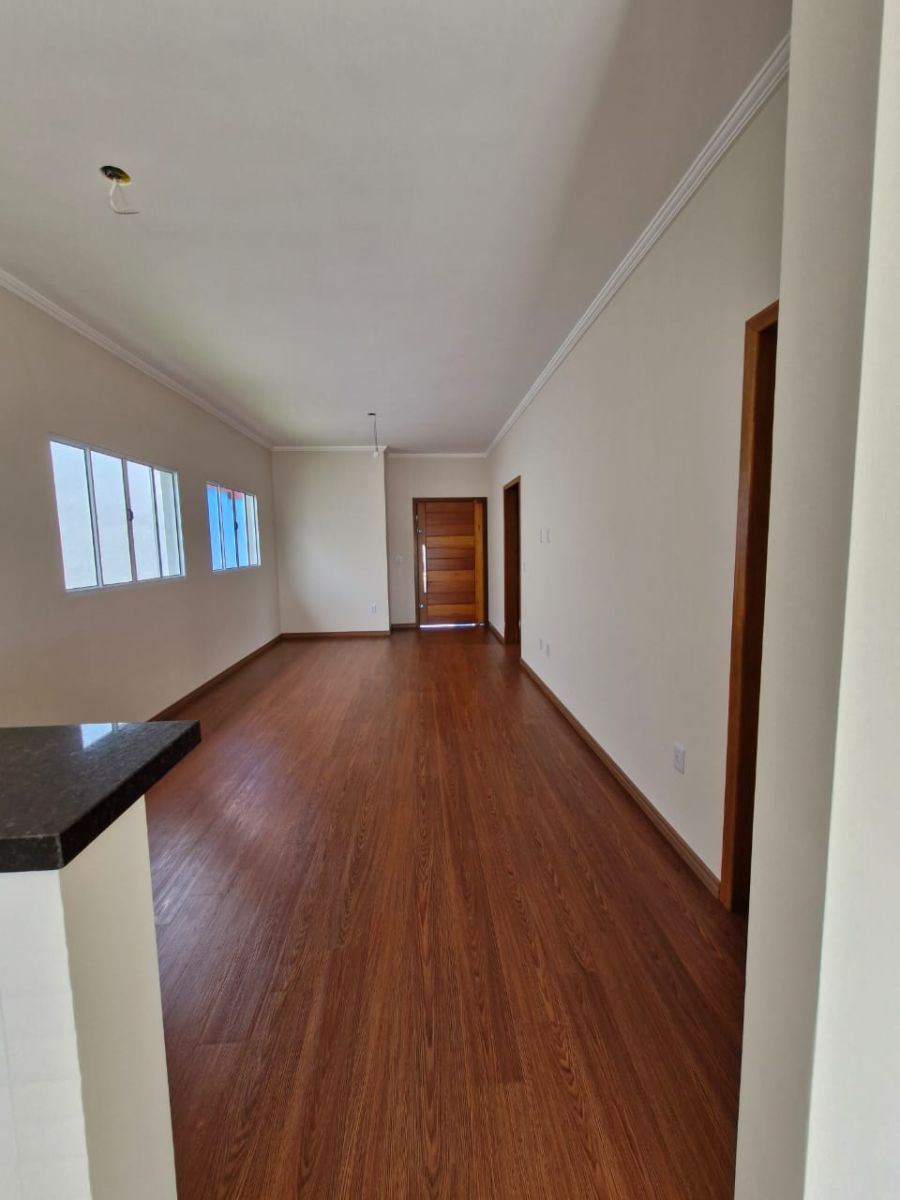 Sala estendida e cozinha integrada.