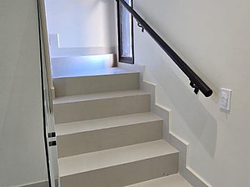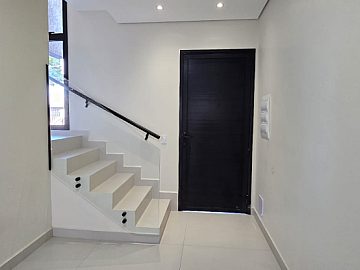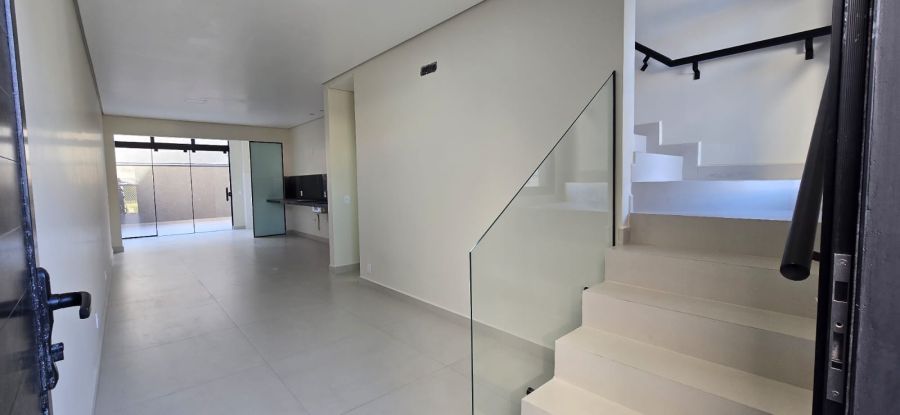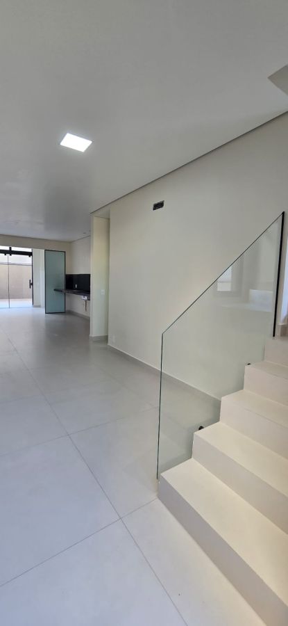 Térreo: 02 Vagas de garagem (sistema gaveta). Sala com porcelanato, acabamento em gesso; Lavabo.