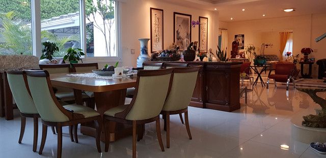 Varandas, cozinha americana, lavabo, armários na cozinha, dormitórios e banheiros e 7 banheiros. Esta casa dispõe de acabamentos de alto padrão, como piso em porcelanato e janelas amplas em PVC.