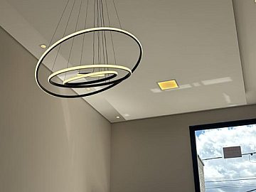 Pé direito alto, sala de tv, área gourmet com churrasqueira, quintal, banheiro externo, lavanderia.