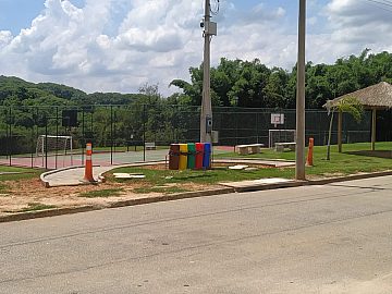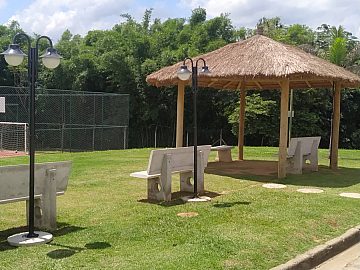 Condomínio com áreas verdes para caminhar ou aproveitar um dia de sol.