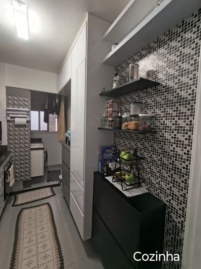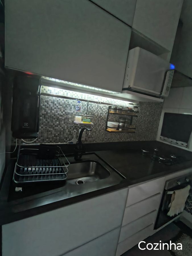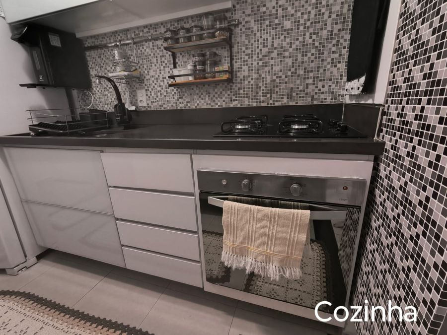 Possui 3 dormitórios, móveis planejados, cozinha com armários.
