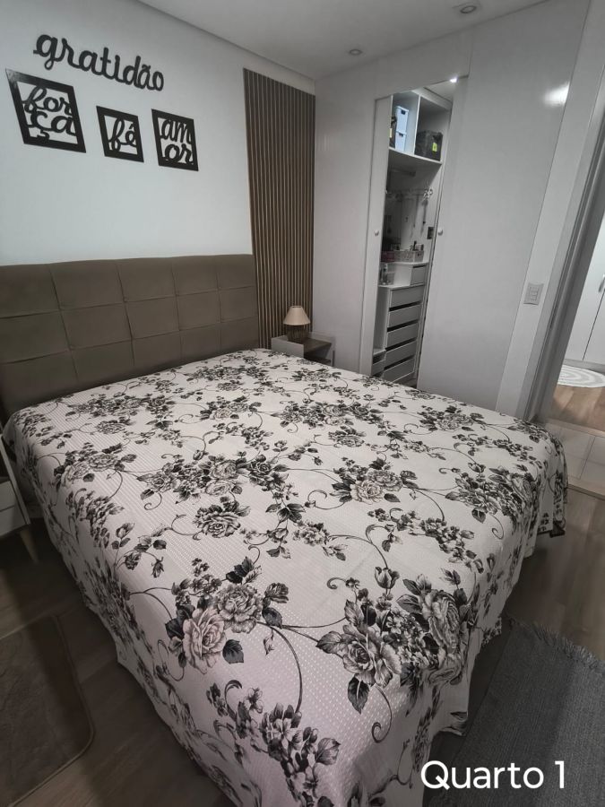 Lazer com playground, salão de festas, churrasqueira, quadra esportiva, sala de jogos, piscina, academia, elevador e mini mercado.