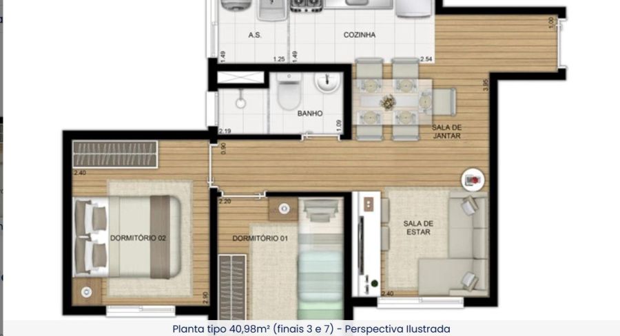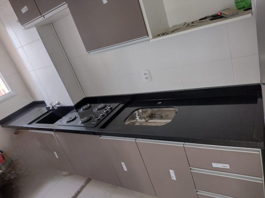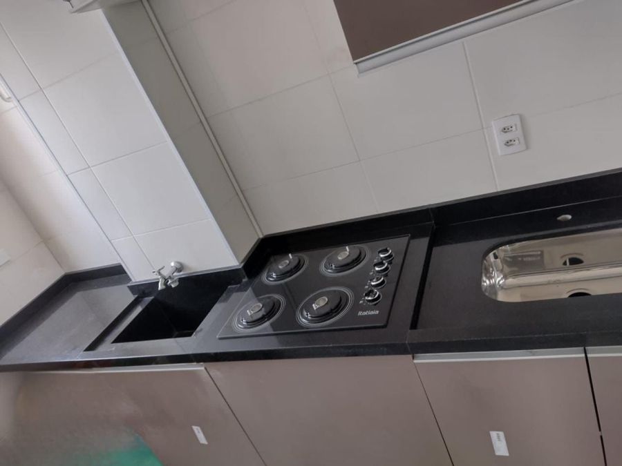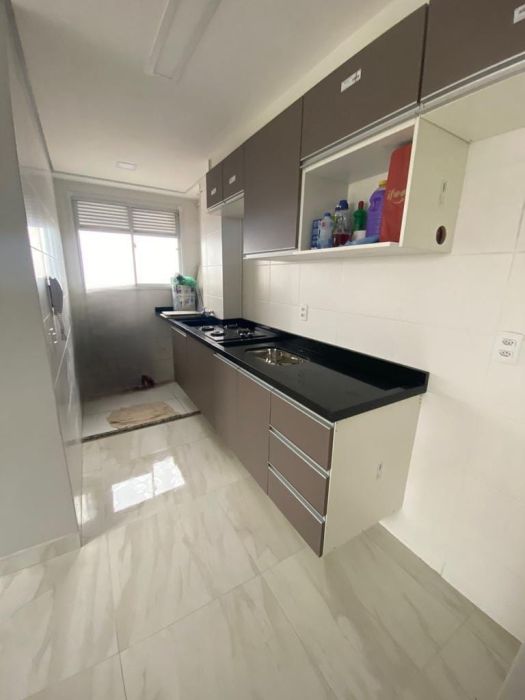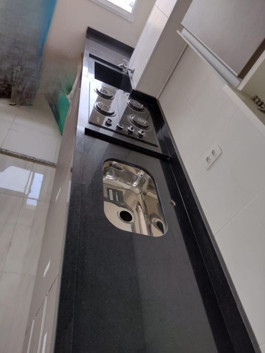 Sendo 41 m2 de área útil e 66 m2 de área total com sala ampla integrada com a cozinha proporcionando amplitude nos ambientes, tudo com sanca de gesso e lâmpadas led, pia em mármore preto e fogão cook top, com cozinha planejada, tudo em piso frio com alto brilho de boa qualidade, área de serviço integrada, dormitórios amplos, armário, banheiro com ótimo acabamento e pia moderna com bons revestimentos, box de vidro e chuveiro.