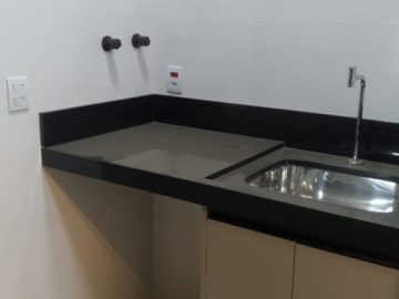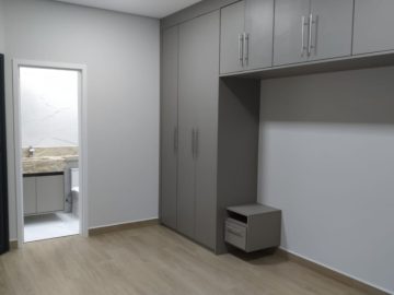 Possui armários planejados tanto na cozinha quanto em um dos quartos.