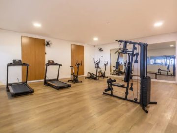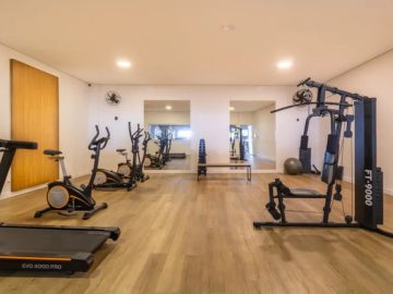 Salão de festas no último andar, com academia equipada e quadra de Squash privativa.