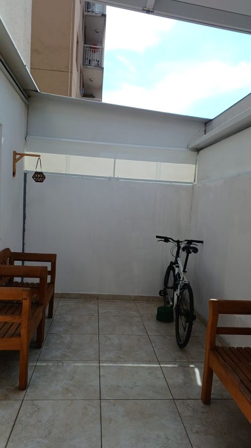 Apartamento Garden com cobertura, cortina e piso.