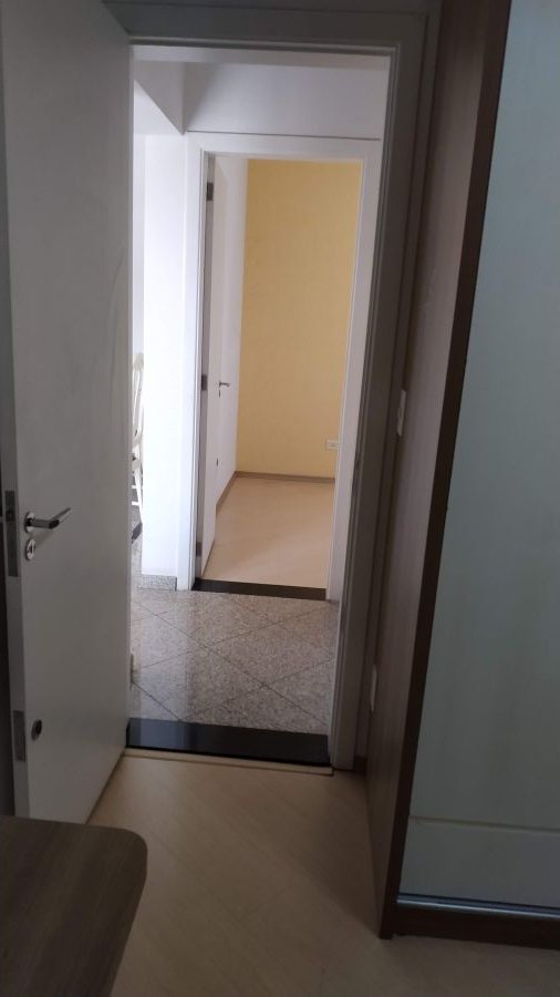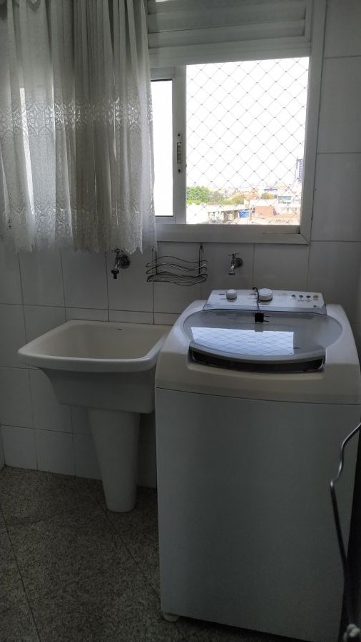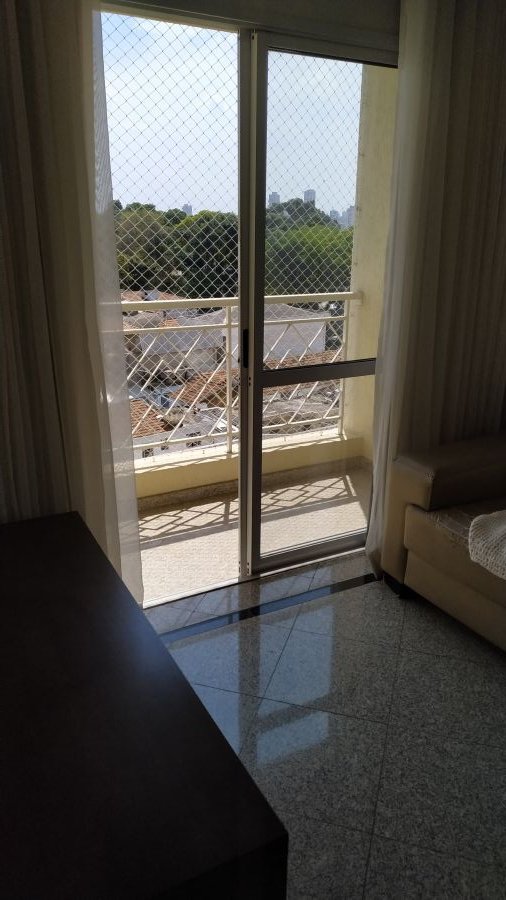 2 dormitórios com sala, cozinha planejada, piso frio, área de serviço, armários no quarto, sacada com tela de proteção.