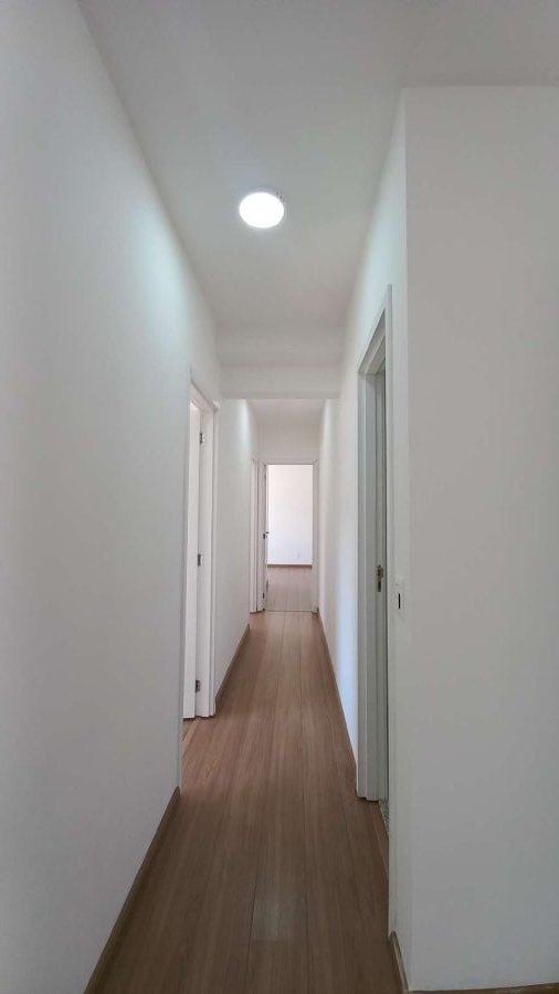 Apartamento com 3 dormitórios, suíte, sala, cozinha americana, área de serviço, piso laminado, banheiro com box de vidro.