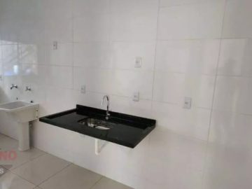 Com 1 dormitório, sala, cozinha, banheiro, área de serviço.