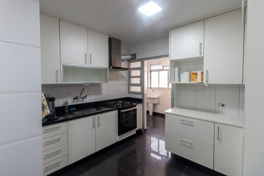 O imóvel conta ainda com banheiro social, área de serviço completa, banheiro e quarto de serviço, além de uma vaga de garagem.