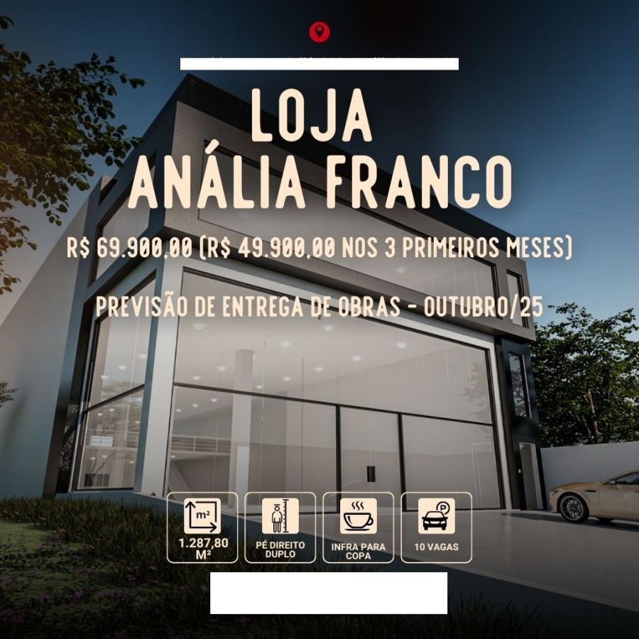 Prédio Comercial para Locação na Anália Franco!Loja comercial imperdível no Anália Franco!