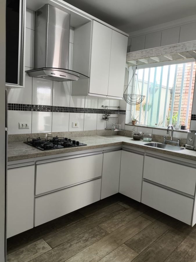 A cozinha é equipada com armários planejados, coifa e Cooktop.