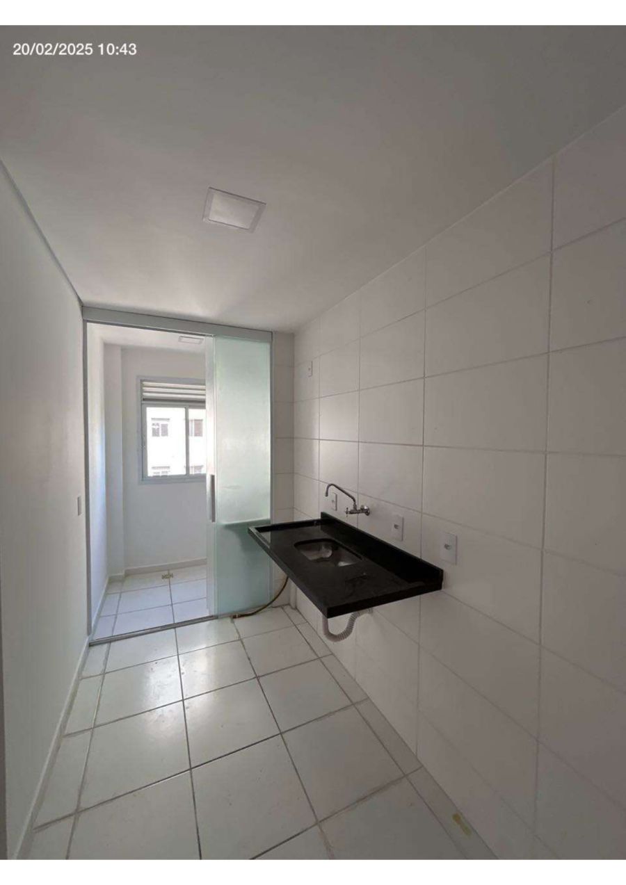 Cozinha com área de serviço, banheiro com gabinete e cuba.