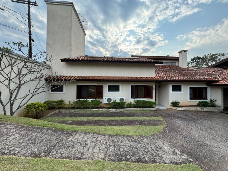 A casa conta com 3 pavimentos: piso térreo com acesso à garagem coberta, piso inferior com 2 suítes e lazer, com acesso ao jardim; e piso superior, com sótão. Área privativa é de aproximadamente 500m² (fora a garagem coberta de 50m², para até 2 veículos, e mais 3 vagas descobertas), divididos da seguinte forma: